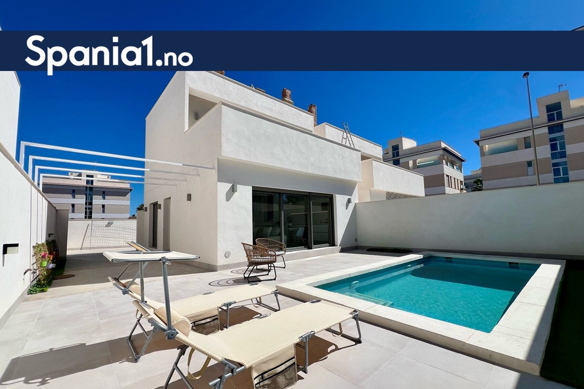 Flott villa med privat basseng | 3 soverom og 2 bad | Mulighet for takterrasse | Solcellepanel