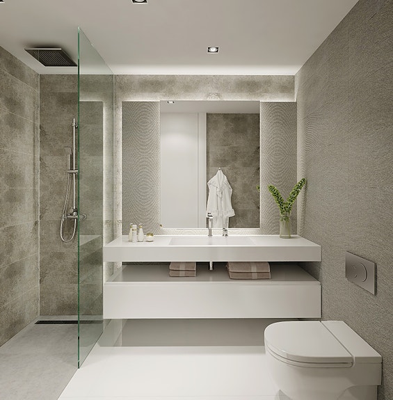Badene er moderne og av høy kvalitet med varmekabler i gulv, dusj, vask og toalett.