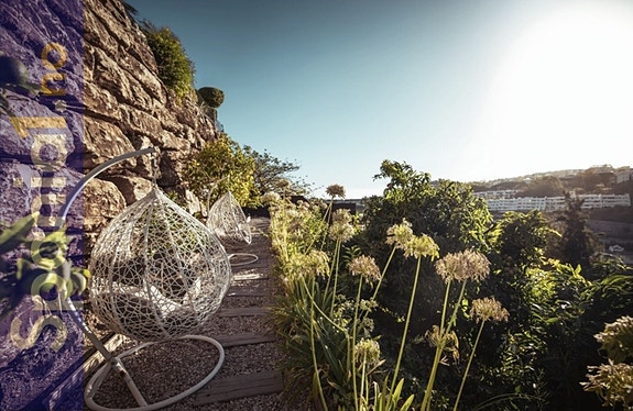 utsikt over havet og fjellet.- Utendørs svømmebasseng