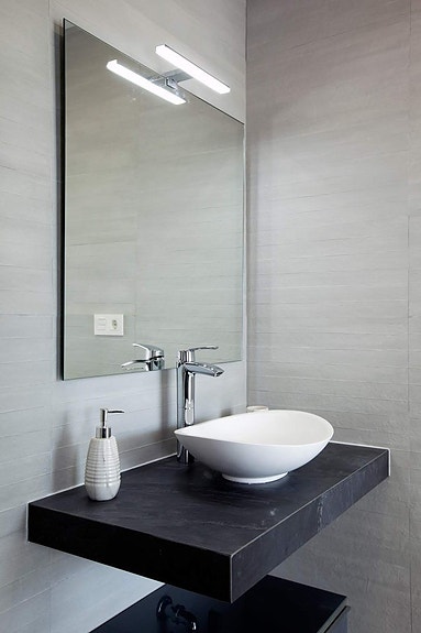 - Kremet marmor eller laminert tregulv