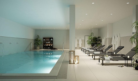 Utendørs og innendørs bassenger, spa-område med tyrkisk bad og badstue, utstyrt treningsstudio, paddle tennisbane, putting green, urbane hager.Dette er et flott område i rolige omgivelser, og nært noen av kystens beste områder.