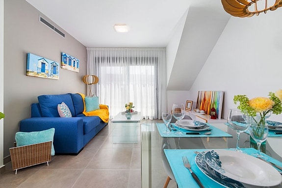 Lamarhouse er tilbake! Nye leiligheter beliggende i Pilar de la Horadada, en sjarmerende spansk by som lever hele året. Det finnes leiligheter på bakkeplan hvor man har en egen hage og i 2.etg med takterrasse, enten med 1-2 soverom og 1-2 bad. Alle leiligheter har en åpen stue og kjøkkenløsning. Det er direkte utgang til hagen via stuen, og i tillegg har man parkeringsplass til bil innenfor lukket område. Tilhørende fellesområdet er det to svømmebasseng, grøntareal og egen lekepark for barn. Leilighetskomplekset ligger i et populært område med gangavstand til butikker, restauranter og hyggelig sentrum, mens det ligger cirka 10 minutter å sykle fra de kilometerlange strendene i Torre de la Horadada og Mil Palmeras.
