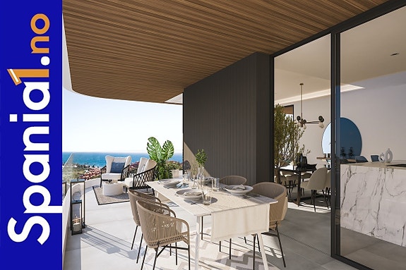 Kun 350m til strand | Fantastisk leilighet med havutsikt | Terrasse på 47m2 | 3 soverom | Flotte fellesområder