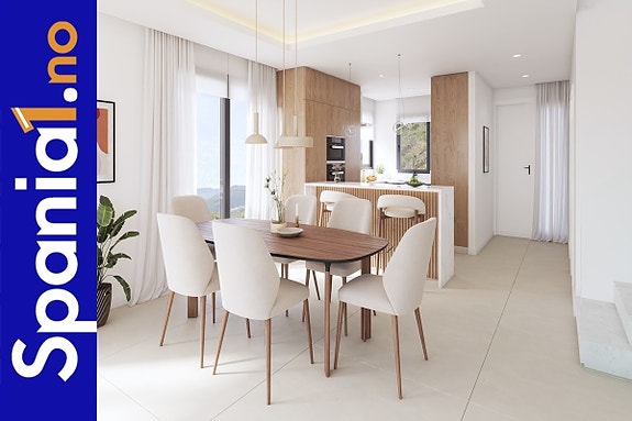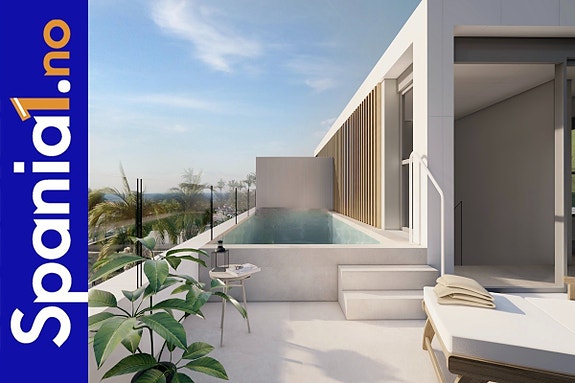10 luksuriøse rekkehus med 4 soverom, 3 til 4 baderom, gjestetoaleter og et ekstra kontorrom. Boligene får fantastisk utsikt over havet, golf og fjell. Moderne arkitektur i toppklasse og materialer av meget høy kvalitet. Boligene sentralt har basseng på takterrassen, mens hjørneboligene har saltvannsbasseng i egen privat hage.