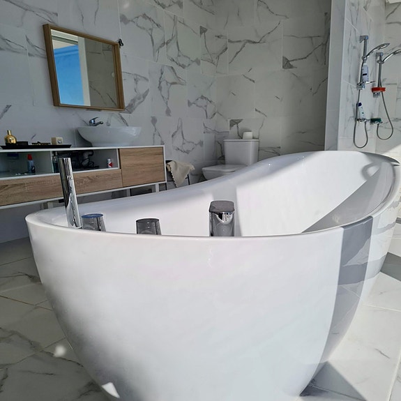 Denne luksuriøse villaen ligger i Benalmadena, et rolig urbanisasjon i område kalt Torremuelle. Kun 60m fra stranden. Fasiliteter som supermarked, bakeri, banker, etc. er kun noen minutter unna.