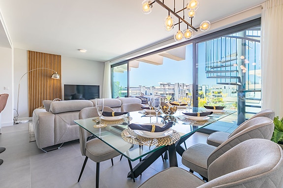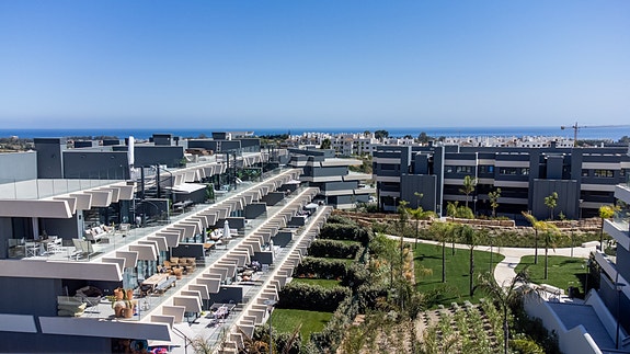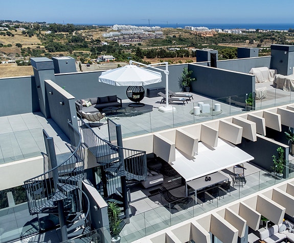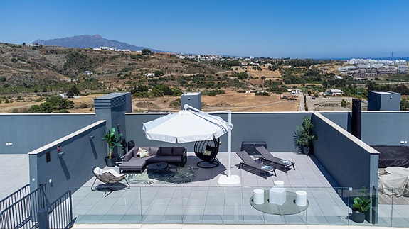 Denne toppleiligheten befinner seg på en høyde i hjertet av Estepona med spektakulær havutsikt. Kun 10 min. gangavstand til sentrum, båthavnen og stranden. Estepona er en fiskerlandsby med en svært attraktiv havn. Det finnes også et bredt utvalg av utmerkede barer og restauranter. Hver søndag er det et populært turistmarked. Estepona har også svært mange vakre strender som strekker seg over hele 21 km. I tillegg finner man også luksuriøse fasiliteter og mange førsteklasses golfbaner i et enestående landskap.