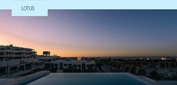 LOTUS Jardinana er et inngjerdet boligkompleks med 24-timers vakthold, som var ferdigstilt i september 2021. Totalt 109 leiligheter med 2 eller 3 soverom. Komplekset tilby sine beboere vakre hager og fasiliteter langt utover forventningene. Der finnes det et utendørs bassengområde og et veldig stort innendørs SPA-område.