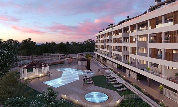 Nye moderne leiligheter i Mijas - Stor terrasse, sjøutsikt og felles basseng - Heis, parkering og bod