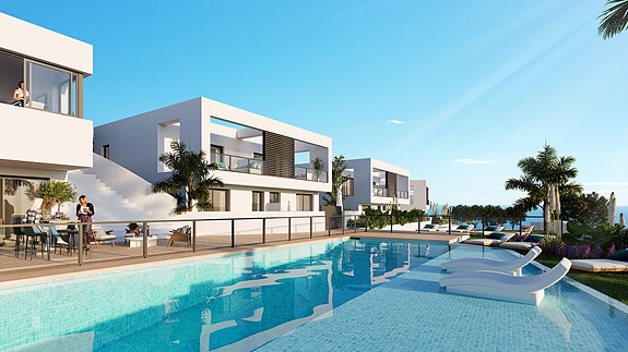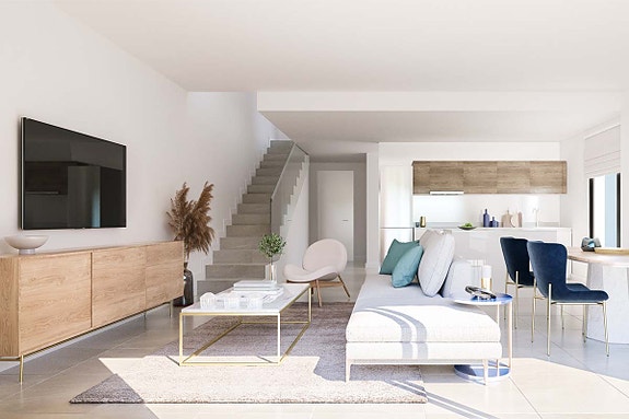 Disse nye rekkehusene har 3 eller 4 soverom og har et areal på opptil 145m². De er fordelt over to plan, inkludert en privat hage og muligheten for eget privat basseng! Hvert hjem er designet med kvalitet og komfort i tankene, og uteplassen er perfekt for klimaet på Costa del Sol.Om boligen