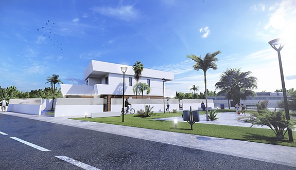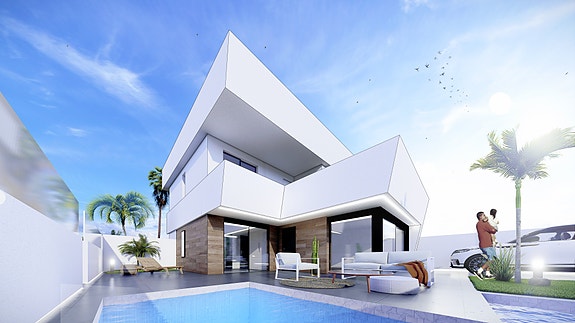 Hjørnevilla med stor uteplass, basseng, takterrasse og garasje - Moderne livsstil i solen