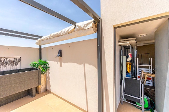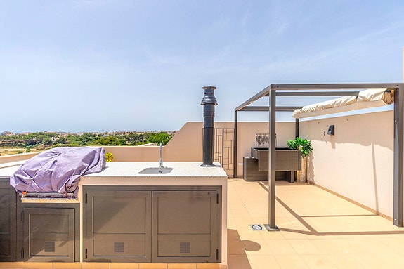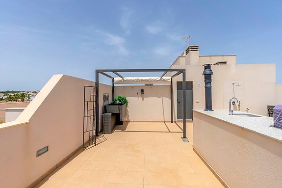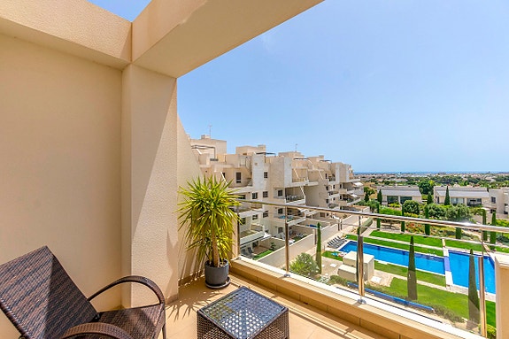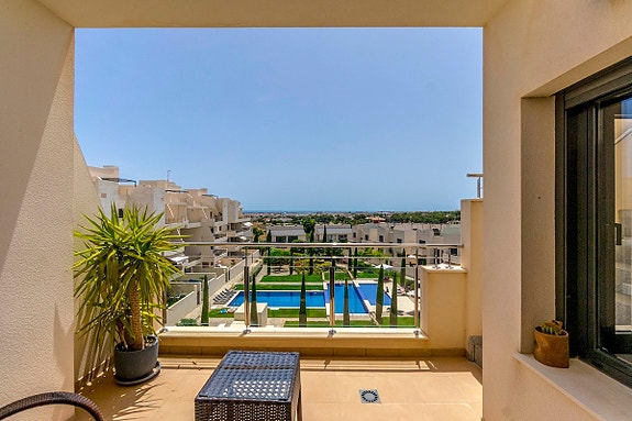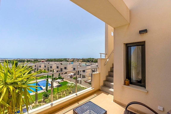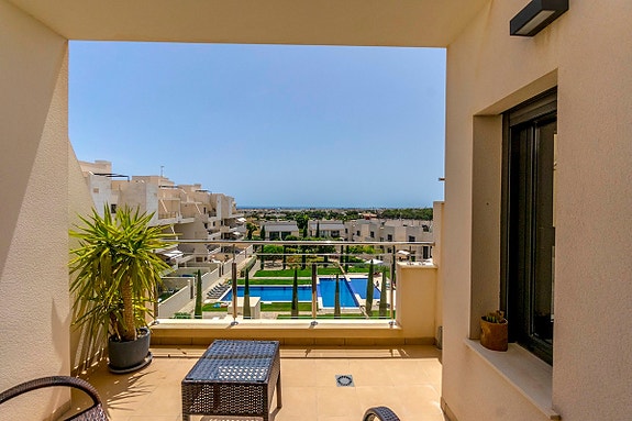 La Zenia er et veletablert og meget attraktivt boligområde i kystkommunen Orihuela Costa, som ligger 5 km sør for Torrevieja og 50 km fra Alicante flyplass. Her bor man med kort gangavstand til stort sett alle tenkelige fasiliteter. Det er matbutikker, restauranter og kafeer “rett utenfor døren” og man finner et av Spanias største utendørs kjøpesentre (Zenia Boulevard) like i nærheten. Området er ellers kjent for sine kritthvite sandstrender med “blå flagg” stempel, som er en indikasjon på blant annet høy vannkvalitet. For deg som ser etter et sted som passer alle i familien, er dette stedet helt ypperlig.- Balkong/Terrasse