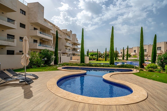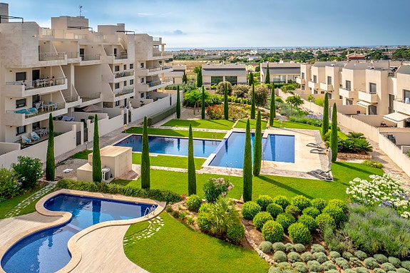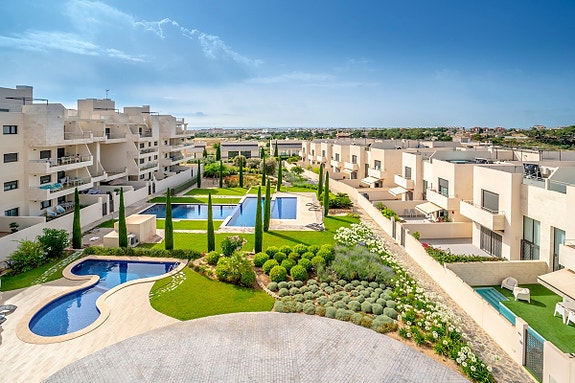 Området er stille og rolig, men samtidig bor man veldig sentral, kun 1 minutt å kjøre til det populære kjøpesenteret "Zenia Boulevard" (evt en spaserstur på 12 minutter). Ønsker du å bruke sykkel har du flere muligheter til å nyte området, enten du vil til stranden (8 min med sykkel) eller ta en lengre tur langs kanalen som ligger noen hundre meter unna. Videre finnes det et stort utvalg av restauranter og kafeer innen gangavstand, og for golfinteresserte er det tre 18-hulls baner innenfor en radius på 2 kilometer.