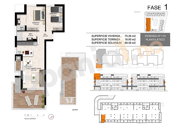 Boligkomplekset består av 106 leiligheter med store terrasser. 104 leiligheter med 2 soverom og 2 bad, og 2 toppleiligheter med 3 soverom og 2 bad.