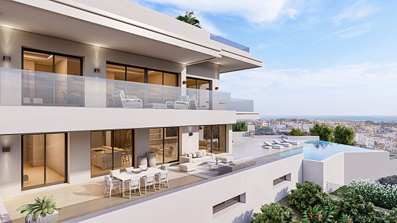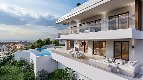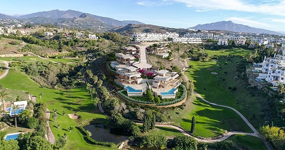 Disse 6 spektakulære villaene ligger på en høyde med fantastisk panoramautsikt over havet og fjellene i La Resina Golf i Estepona. En nydelig beliggenhet mellom Marbella og Estepona med uslåelig utsikt til Middelhavet, Afrika og Gibraltar. Estepona er en liten fiskerlandsby, og havnen i Estepona er svært attraktiv med mange flotte yacther. Det finnes også et bredt utvalg av utmerkede barer og restauranter. Estepona har også svært mange vakre strender som strekker seg over 21 km. I tillegg finner man også luksuriøse fasiliteter og mange førsteklasses golfbaner i et enestående landskap.Avstand