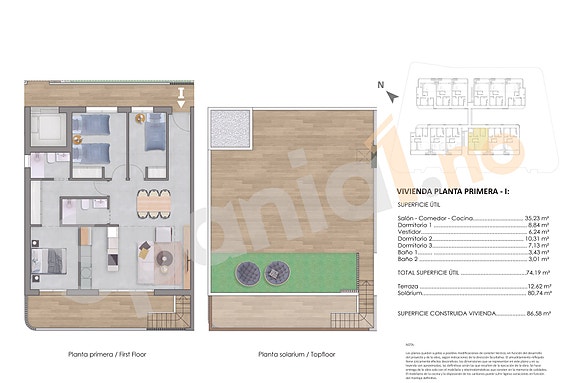 Toppleilighet med takterrasse, 3 soverom og 2 bad fra 221.900 euro