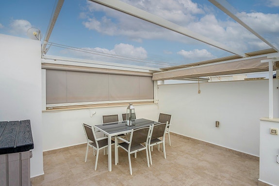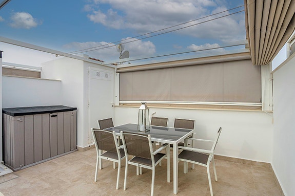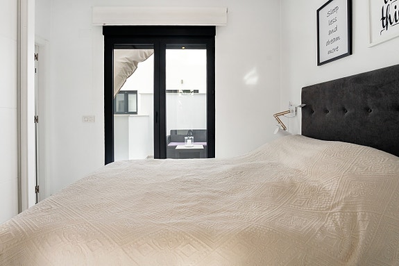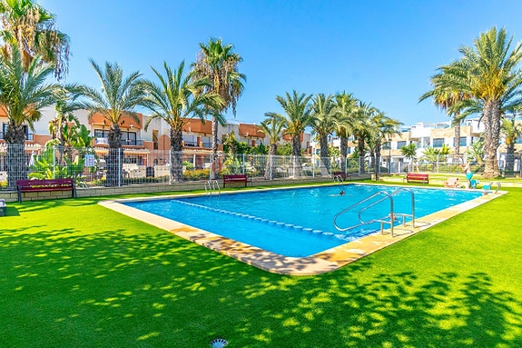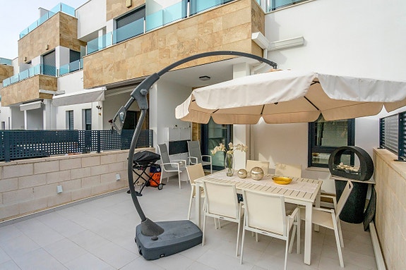 Nyere flott rekkehus i det populære området "El Barranco" som ligger bare minutter å gå fra Playa Flamenca. Gangavstand til et stort utvalg av restauranter, matbutikk, idrettsanlegg, lørdagsmarked, kjøpesenteret "Zenia Boulevard" etc. Stranden sykler man til på cirka 15 minutter. Ellers flere 18-hulls golfbaner innenfor noen få kilometer.