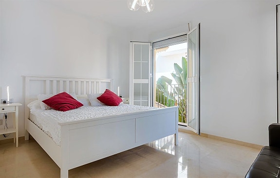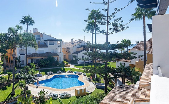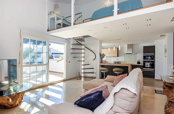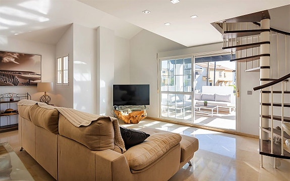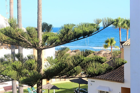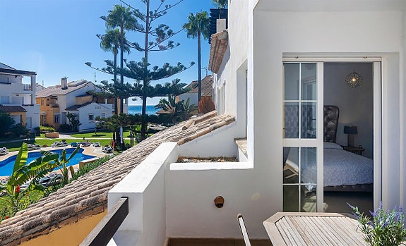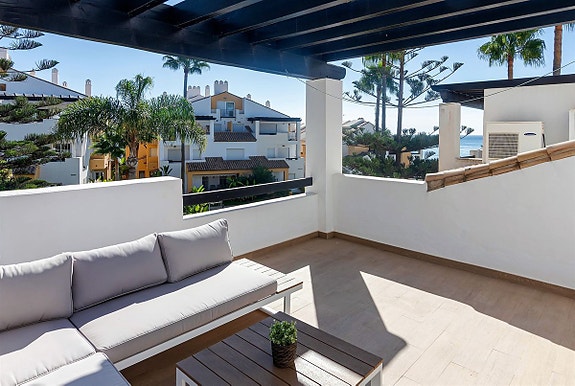 Denne vakre toppleiligheten med to etasjer ligger kun 50 meter fra de beste strendene i Marbella. Den er nylig oppusset og modernisert til en svært høy standard med luksuriøse innredninger. Den har et helt nytt åpent kjøkken, nye bad og nye dører. Fra terrassene kan du nyte vakker utsikt over de tropiske hagene og sjøen. Dette er et veldig trygt og sikkert område med 24 timers sikkerhet, et rolig område, vakker bebyggelse med frodige hager og direkte tilgang til stranden. Leiligheten selges med to garasjeplasser, kun 5 minutter fra Marbella og en 35-minutters kjøretur fra flyplassen. Supermarked og strandrestaurant ligger i gangavstand.