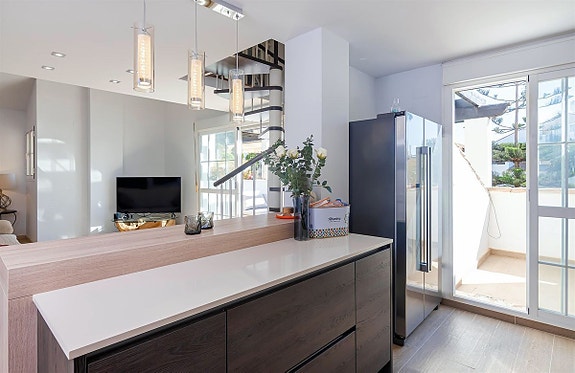 Denne moderne toppleiligheten ligger i et rolige området i Elviria og kun 50 meter fra stranden!. Elviria har vært lenge et populært feriested og ligger bare noen få kilometer øst for Marbellas sentrum med noen av de beste strendene på Costa del Sol, sammen med de beste strandklubbene, som Nikki Beach. Elviria har tre internasjonale privatskoler og tre populære golfbaner. Nærhet til populært kjøpesenter med aktivitet hele året og som tilbyr et bredt utvalg av internasjonale restauranter., kun 1,5 km unna.- 50 meter til stranden
