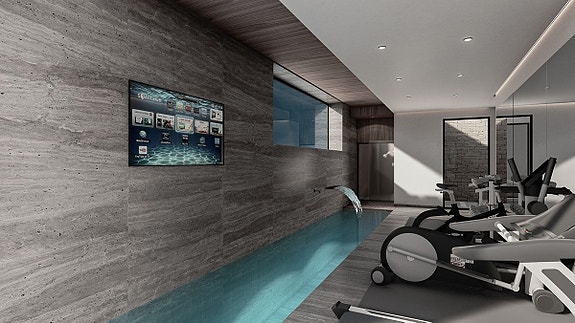 - Underetasjen byr på et innendørsbasseng samt et treningsstudio, badstue, kontor, bod og overnattingsmuligheter for ansatte.