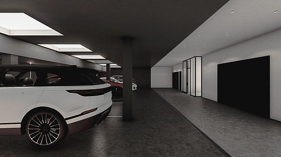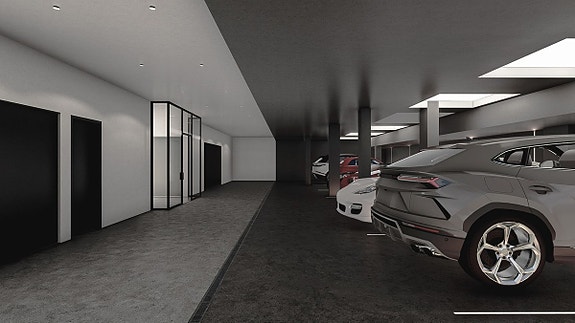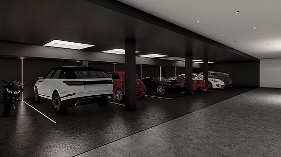 Planløsning er som følger:- På lavere nivå er det plass til minst 20 biler i garasjen, ideell for en bilentusiast eller samler.