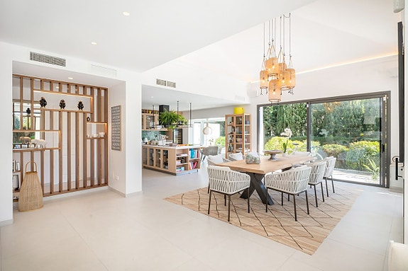 Under renoveringene ble alle vinduene ut mot terrasse erstattet med gulv-til-tak-doble dører, som gir alle rom en følelse av romslighet og lys.