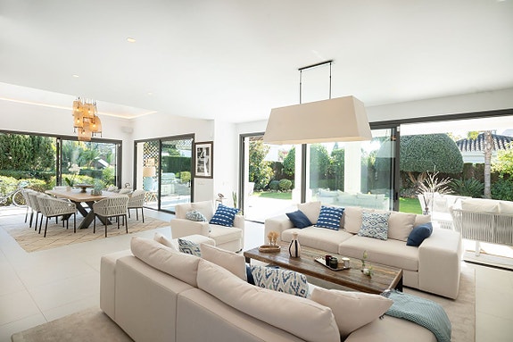 Dette eksklusive huset ligger i et av de mest etablerte og rolige område Guadalmina Baja i Marbella, bare noen minutters gange fra stranden. G