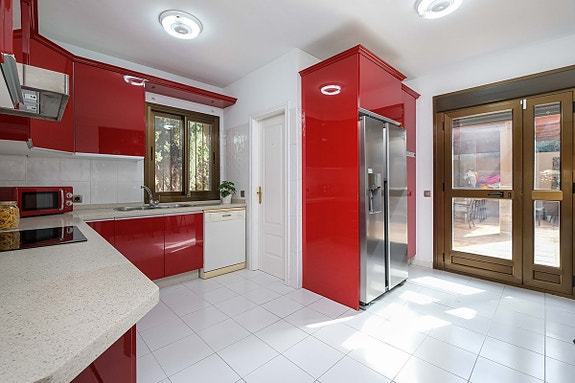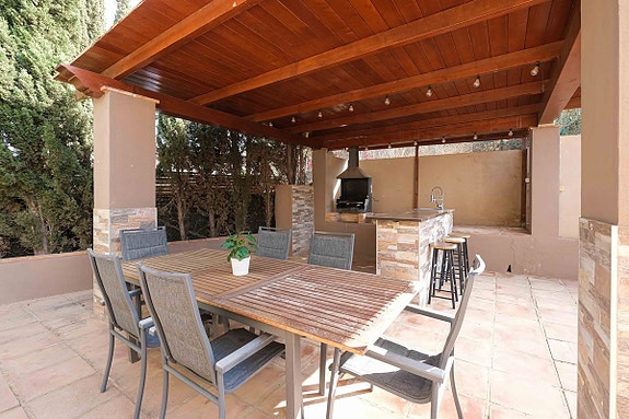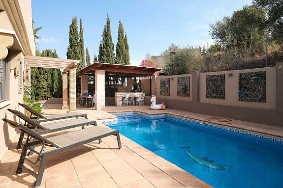 - Hovedetasjen har en romslig kjøkken, fullt utstyrt med separat vaskerom, og direkte tilgang til bassenget og grillområdet