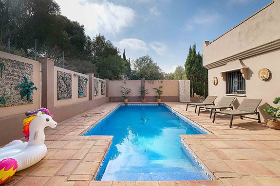 Denne fantastiske villaen ligger i en av de beste private urbaniseringene i Mijas Costa, Jardines del Águila. Ideell beligenhet mellom Fuengirola og La Cala de Mijas, og enkel tilgang til motorveien.