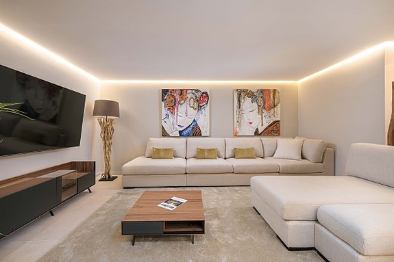 - Stue er svært romslig, lyst og med peis og tilgang til en fullstendig glasert terrasse hvor man kan slappe av og nyte utsikten over fjellet.