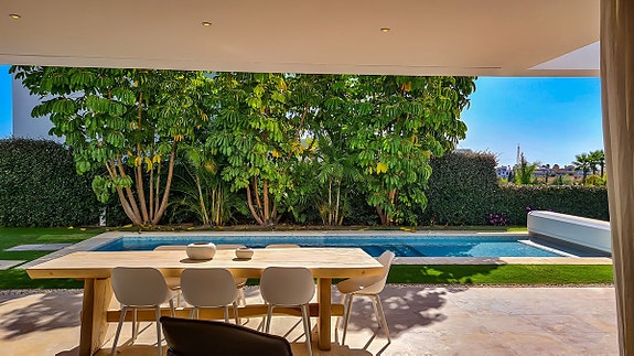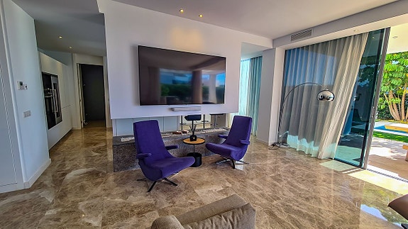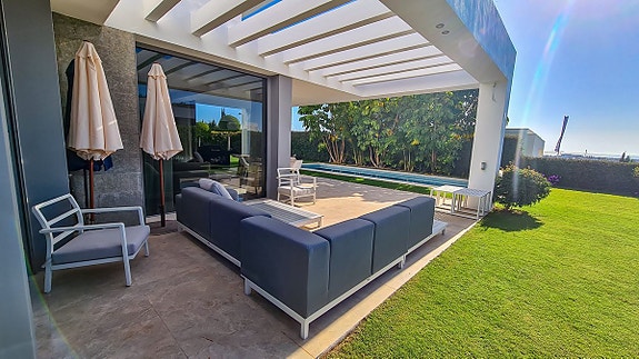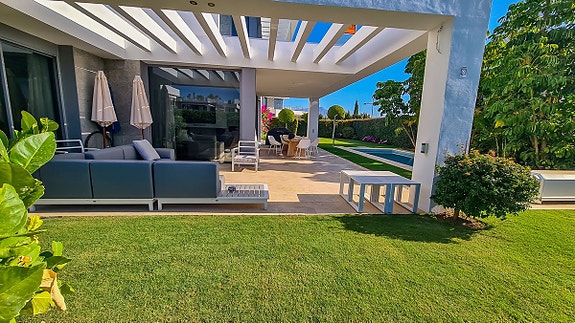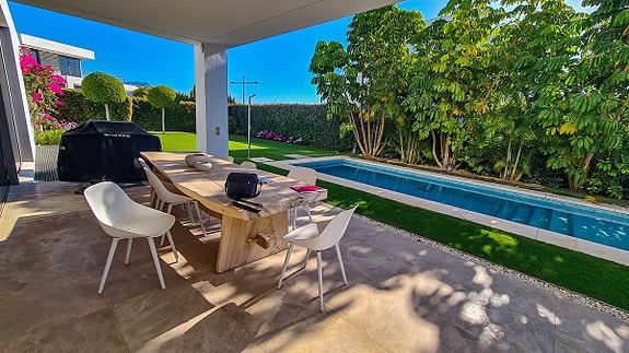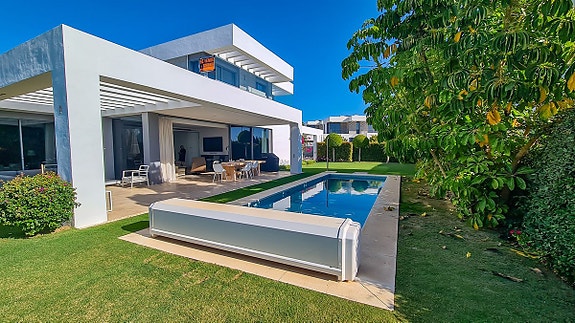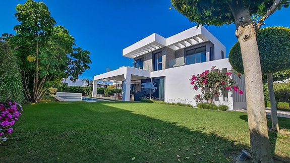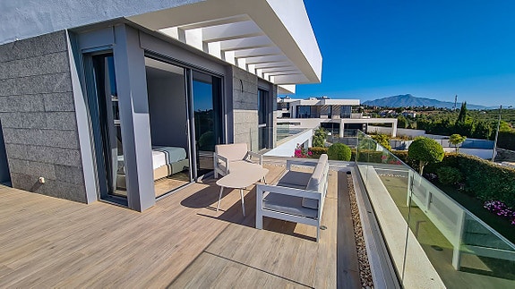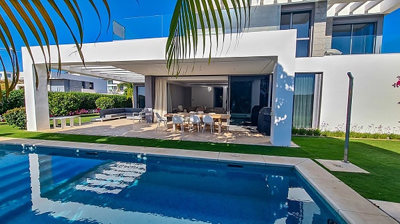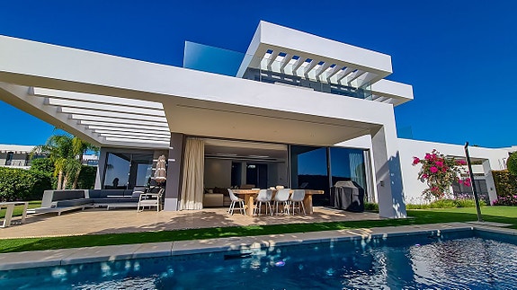 Denne moderne villa som ligger i Cancelada, halvveis mellom Estepona og Marbella. Villaen er en del av en gruppe på 17 eksklusive villaer som ligger i nærheten av golfområdet Los Flamingos, og i nærheten av butikker, skoler, restauranter, strender, idrettsfasiliteter og alle andre tjenester.