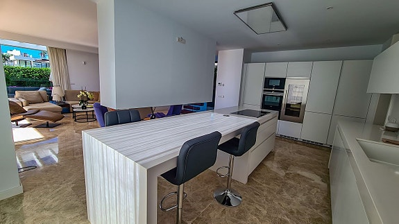 - Kjøkkenet har en kjøkkenøy og høyeste skapfinish, Miele-apparater (inkludert vinkjøleskap, tallerkenvarmer, dampkoker, ...).