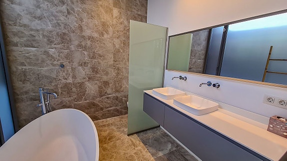 - Hele hagen er landskapsarbeid med palmer, sitrustrær, modne hekker. Det er også automatisk vanning og belysning i hele hagen.