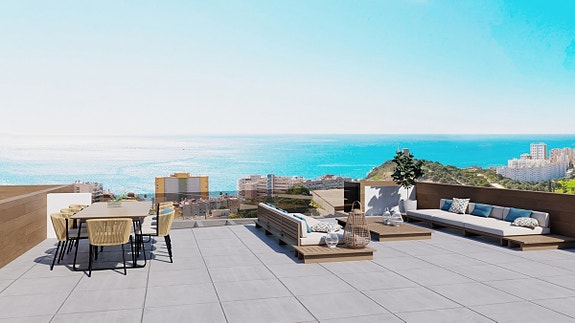 Disse unike tomannsboligene ligger på Torreblanca Hill i Fuengirola, og tilbyr fantastisk panoramautsikt over Middelhavet og bysilhuetten i Fuengirola.