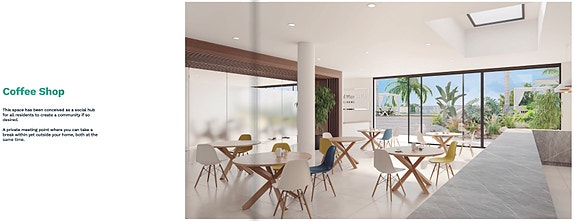 Det er 20 fantastiske tomannsboliger, alle med romslige terrasser og private bassenger, og 48 luksusleiligheter som består av leiligheter på bakkeplan med hager og penthouse-leiligheter med takterrasser, alle med eget basseng.Leilighetene har store terrasser, havutsikt og luksuriøse kvaliteter.Om boligen