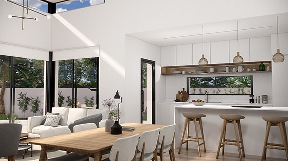 Nye moderne eneboliger i rekke og frittliggende med 3 soverom og 3 bad, egen hage terrasse og takterrasse.