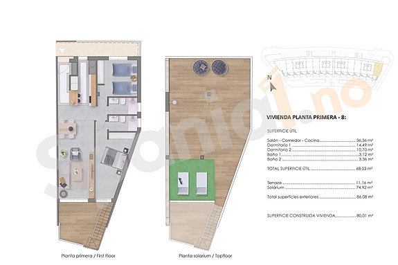 - Toppleilighet med takterrasse, 2 soverom, 2 bad fra 221.000 euro