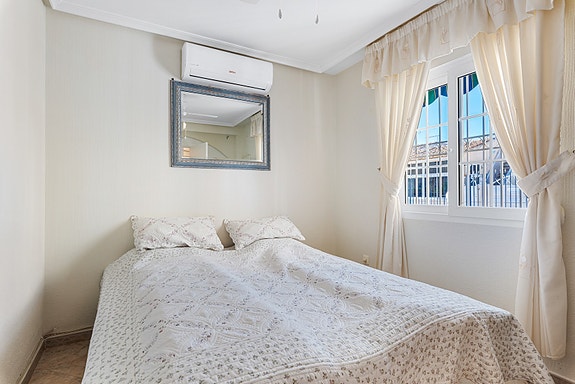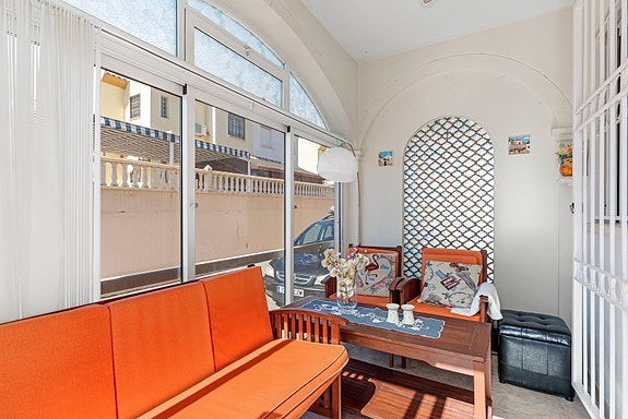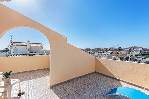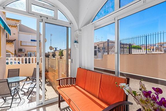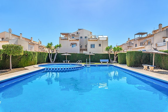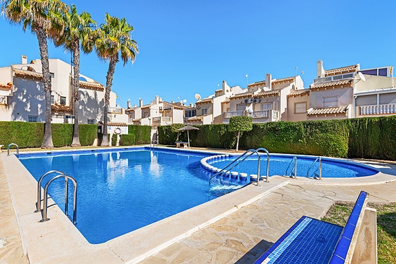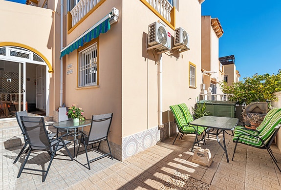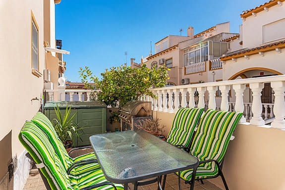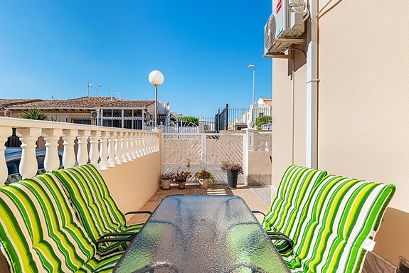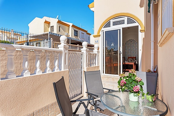 Innholdsrikt og familievennlig rekkehus i populære Playa Flamenca. Området er kjent for sine sandstrender, livlige atmosfære og gode fasiliteter året rundt, inkludert restauranter, barer, supermarkeder og kjøpesentre som Zenia Boulevard.