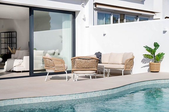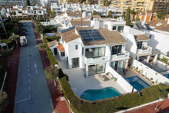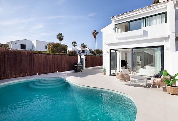 Dette unike, moderne huset ligger i det mest ettertraktede området på strandkanten av den populære byen San Pedro, tett på Nueva Alcantara Padel-klubben og I/O gym.