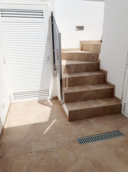 Boligene er bygget i 2019 og har 3 soverom og 2 bad samt gjestetoalett, takterrasse og uteplass meg basseng.