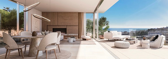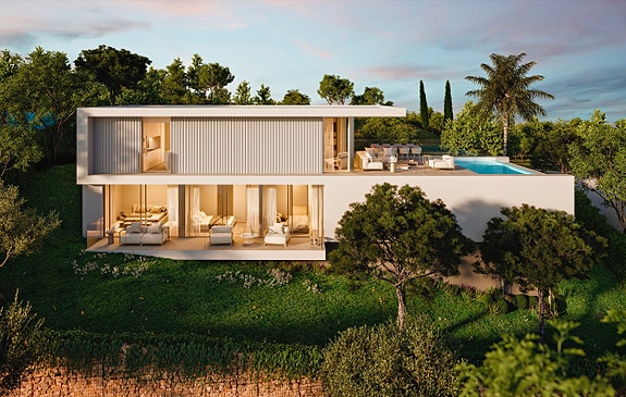 Disse nye Higueron West-villaene vil ha fantastisk havutsikt, i en villa i stil med boliger fra California og Stillehavskysten.