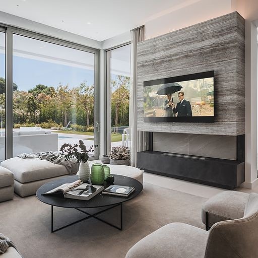 Hver villa er bygget over tre etasjer og har en sørøstlig orientering. I første etasje finner man en romslig og stilig åpen planløsning med stue og spisestue og integrert moderne og praktisk kjøkken bygget med høykvalitets tyske apparater, kombinert med smart teknologi og varm arkitektonisk design.Stueområdet har tilgang til terrassen og den private hagen, samt det private svømmebassenget.
