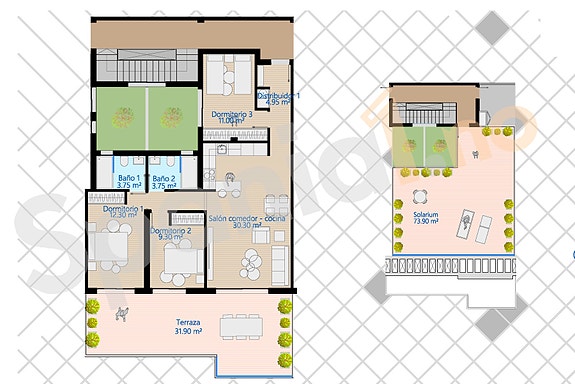 Toppleilighet med 3 soverom, 2 bad og takterrasse, pris 399.000€Pris pr jun 2023