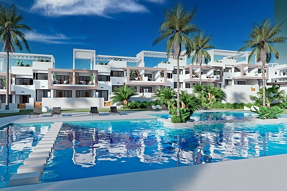 Komplekset består av leiligheter, toppleiligheter og bakkeplan med 2 eller 3 soverom og 2 bad, åpen kjøkkenløsning med stue, innebygde garderober, terrasse..