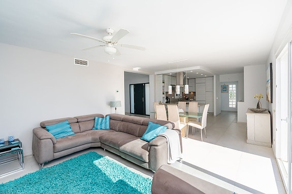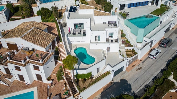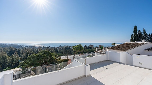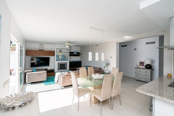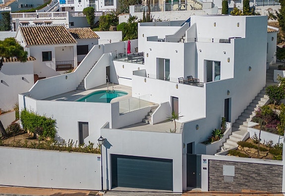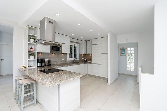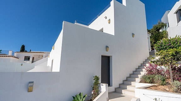 En vakkert renoveret og moderne villa, beliggende mindre enn en 10-minutters gange fra sentrum av La Cala de Mijas og stranden. Med fantastisk panoramautsikt over havet fra alle nivåer av eiendommen, er dette virkelig et sjeldent funn. La Cala de Mijas ligger midt mellom Malaga og Marbella. Denne hyggelig byen er kjent for et stort utvalg av restauranter, og for den 7 km lange strandpromenaden. Her kan du velge mellom spanske chiringuitos og de litt mer luksuriøse strandklubbene. La Cala er en liten, intim by med hyggelig og avslappende atmosfære, et perfekt feriested for barnefamilier og voksne. Dette området er også et paradis for golfentusiaster. La Noria Golf ligger sentralt i La Cala, bare få minutter unna ligger Calanova Golf, La Cala Golf og den velkjente Chaparral Golf.