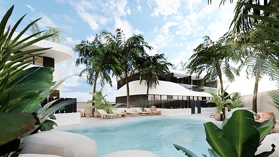 Fellesområdene blir lekre med bl.a. sandbasseng og tropisk hage.