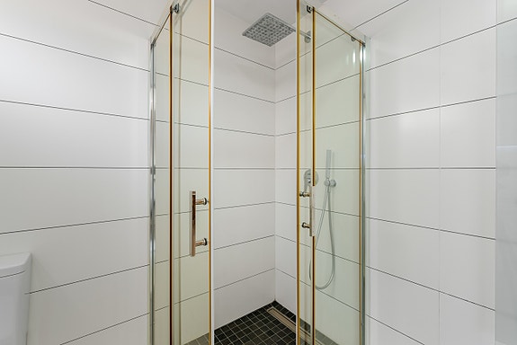 - Innebygde garderober med skyvedører i lys farge.