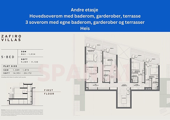 Det skal bygges tre typer villaer :- VILLA DIAMANTE - 2 villaer med 6 soverom