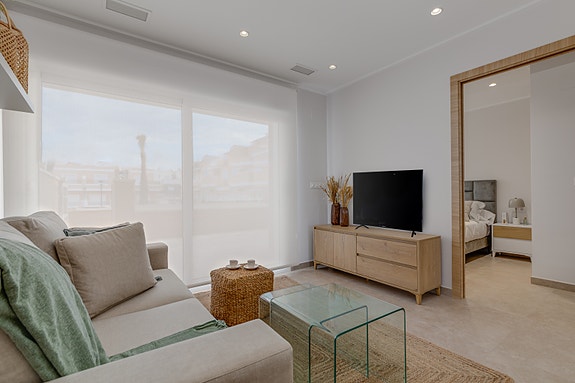Penthouse leilighet med 3 soverom i Torre de la Horadada. Prosjektet ligger kun 100m fra en av de flotteste strendene på Costa Blanca Sør, du har et bakeri bare 100m unna, en fantastisk strandpromenade, båtmarina, restauranter og butikker - alt innenfor gangavstand.