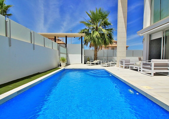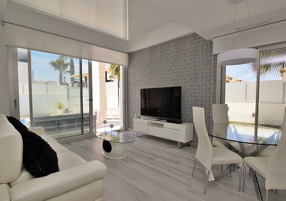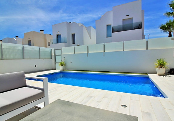 Fantastisk luksus villa til salgs i Lomas de Cabo Roig. Denne moderne villaen ble bygget i 2019 og tilbyr et fantastisk privat basseng, med rikelig uteplass å underholde, sole seg og spise på, inkludert et sommerkjøkken med murbygget grillområde. Denne vakre villaen må sees for å bli verdsatt fullt ut og ligger i et sikkert inngjerdet område, kun 200 meter fra et bredt utvalg av fasiliteter, inkludert butikker, barer, restauranter og en bussholdeplass. Strendene Campoamor, Aguamarina og Cabo Roig ligger bare noen få minutters kjøring unna.