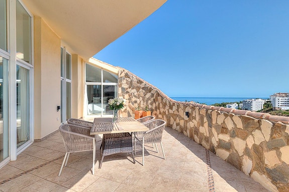Nydelig penthouse leilighet som har en attraktiv beliggenhet nær Miraflores golfbane, og en rolig 30-minutters spasertur fra stranden. I nærheten finner du et bredt utvalg av butikker og restauranter. Riviera del Sol har en strategisk posisjon mellom La Cala og Calahonda.